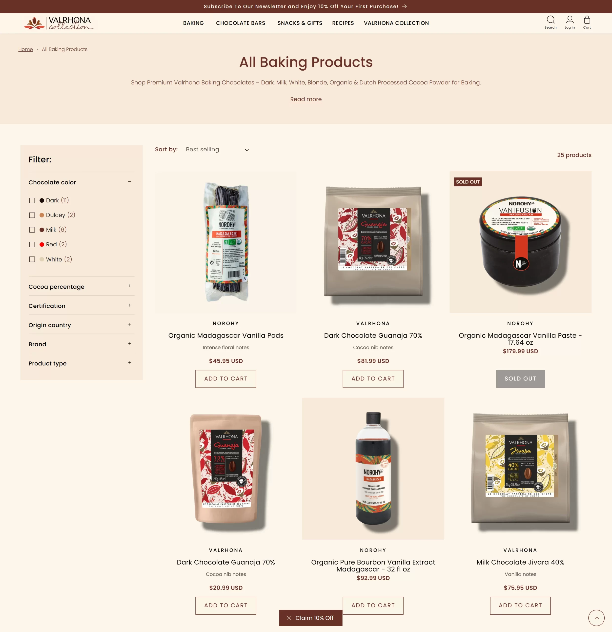 Every design element—from banners to product pages—was aligned with Valrhona’s global identity, reinforcing trust, luxury, and professional quality for customers in the U.S. market.